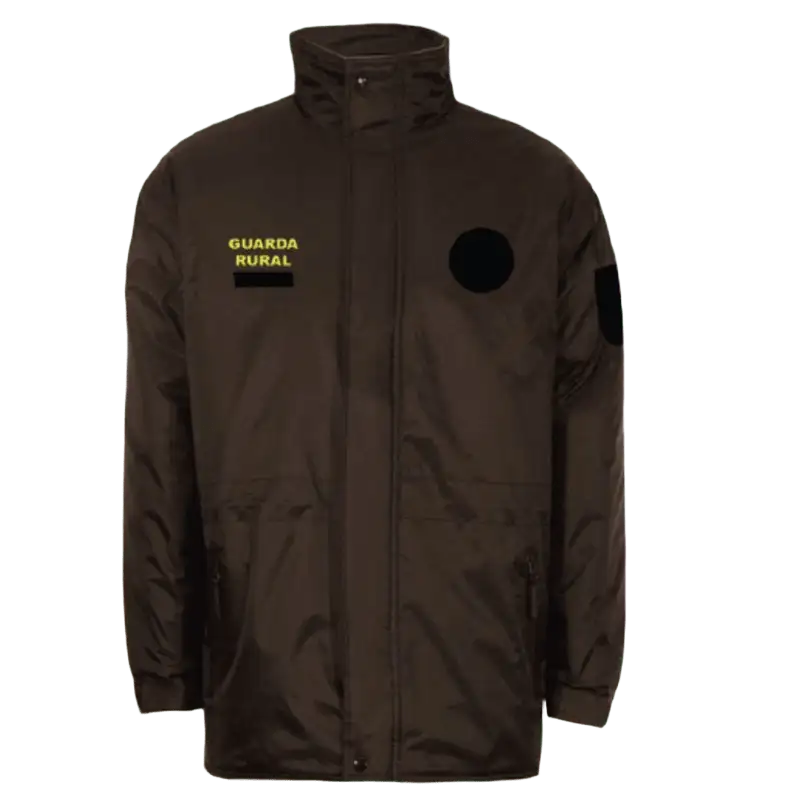 Cazadora softshell tricapa de alta resistencia, impermeable y transpirable. Diseñada para Guardas Rurales, con cremalleras interiores para acoplar forro polar modelo G8000K3, aberturas laterales, hombreras, rotulación oficial, velcros para emblemas y  TIP. Comodidad, protección y uniformidad profesional. VER FORRO ADAPTABLE 086 G8000K3