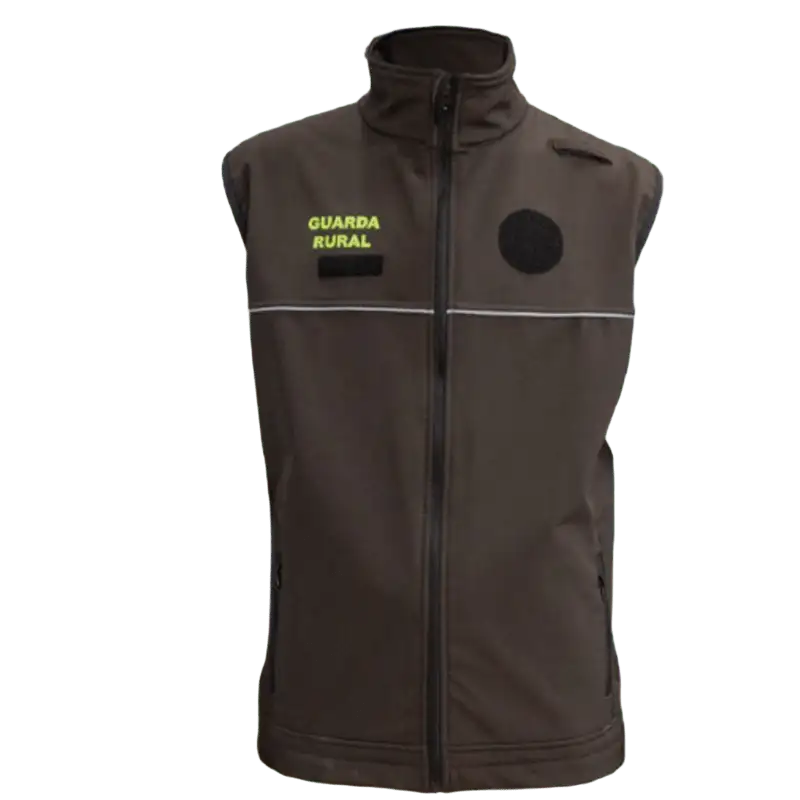 Chaleco tricapa softshell Guarda Rural, repelente al agua, resistente y transpirable. Incluye velcros para emblemas y serigrafías oficiales Guarda Rural. Máxima movilidad, protección y confort en el servicio.