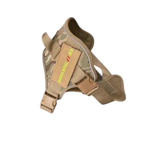 Su diseño ajustable permite adaptarlo fácilmente a diferentes tamaños y razas, garantizando un ajuste firme y seguro. Es ideal para Guardas Rurales, agentes de vigilancia rural o cualquier unidad canina que necesite un arnés robusto y funcional.