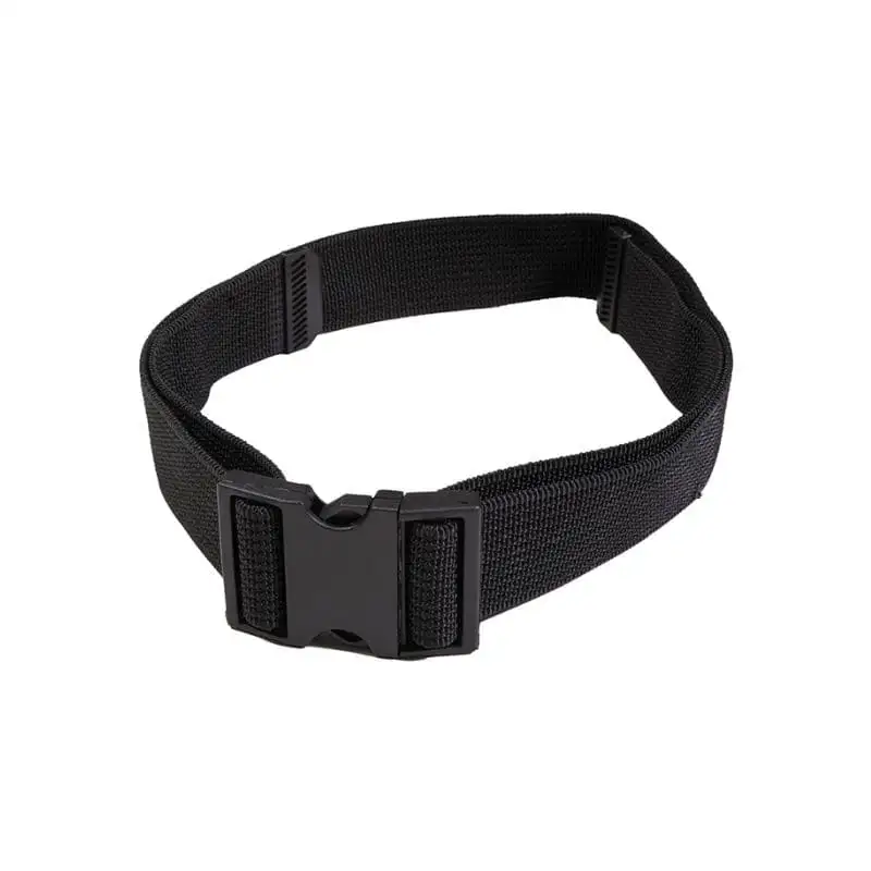 Cinturón de uniforme en nylon, 140 x 5 cm, resistente y ligero. Incluye hebilla de plástico de alta durabilidad. Ideal para uso profesional y diario.