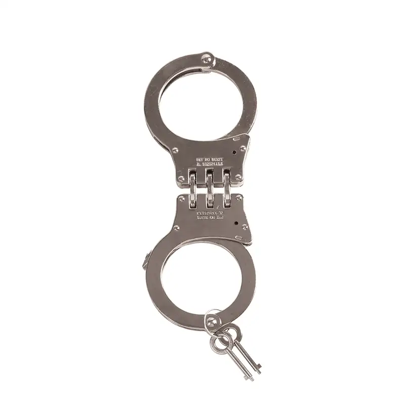 Grilletes de bisagra profesionales, robustos y seguros. Diseñados para un control eficaz y mayor inmovilización, ideales para uso profesional en seguridad y vigilancia.
